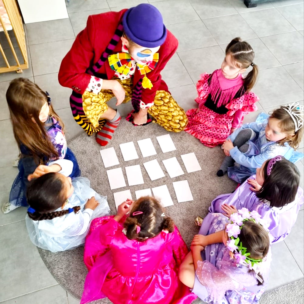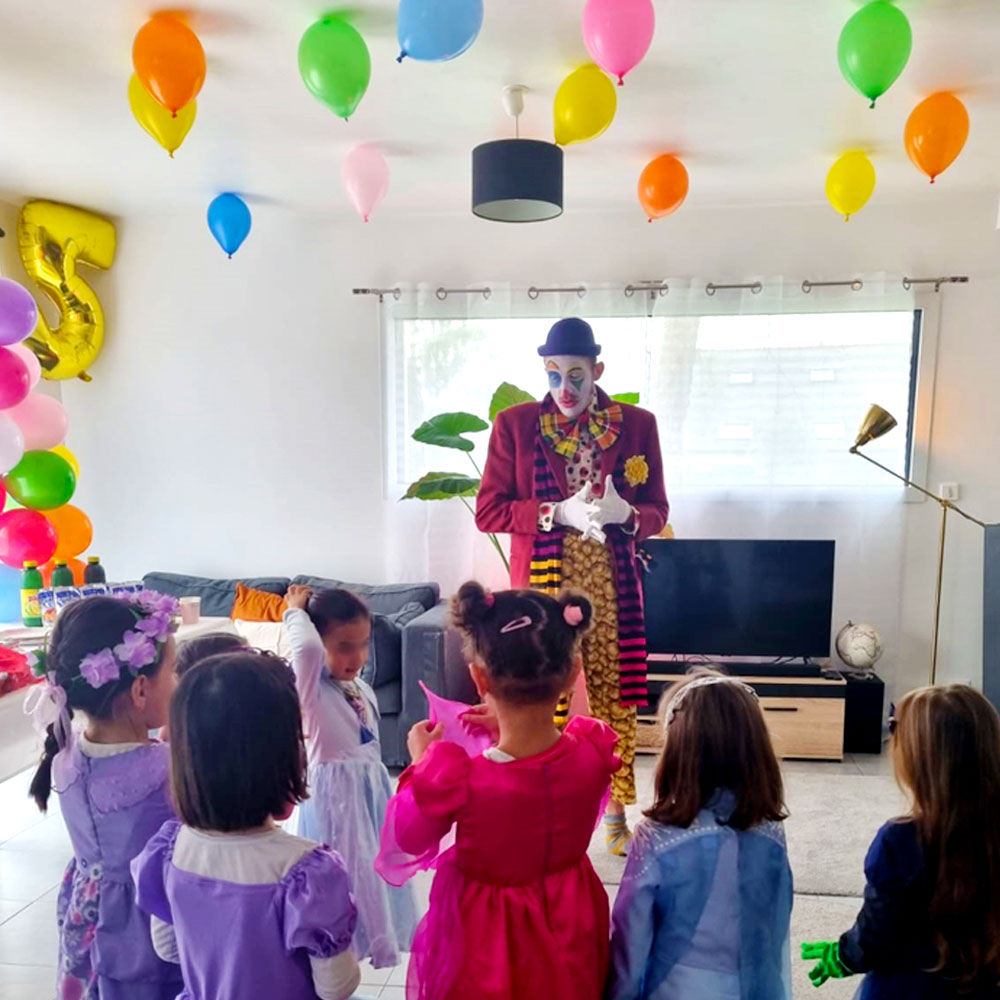 - L’animateur arrive avec son propre costume et son matériel inclus dans l’animation (maquillage, musique, tour de magie).