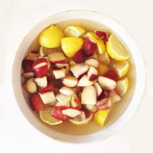 Régalez-vous en dégustant les morceaux de pêches et les quarts de citrons infusés !