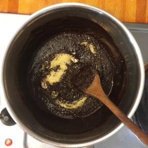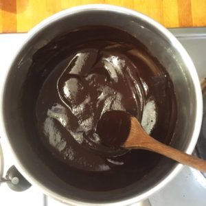 2. Faire fondre le chocolat dans une casserole avec 10 cl d’eau ou au bain marie