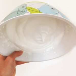 1. Battre l’eau des pois chiches en neige avec la pincée de sel (C’est un peu plus long à monter que les œufs, mais ça vaut le résultat !)
