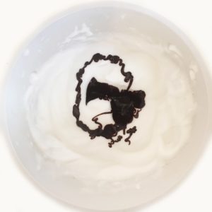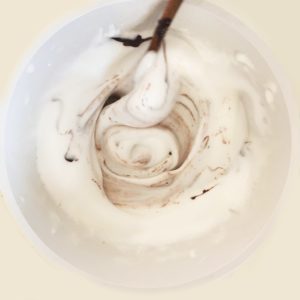 4. Versez le chocolat dans la neige de pois chiche et mélangez délicatement.