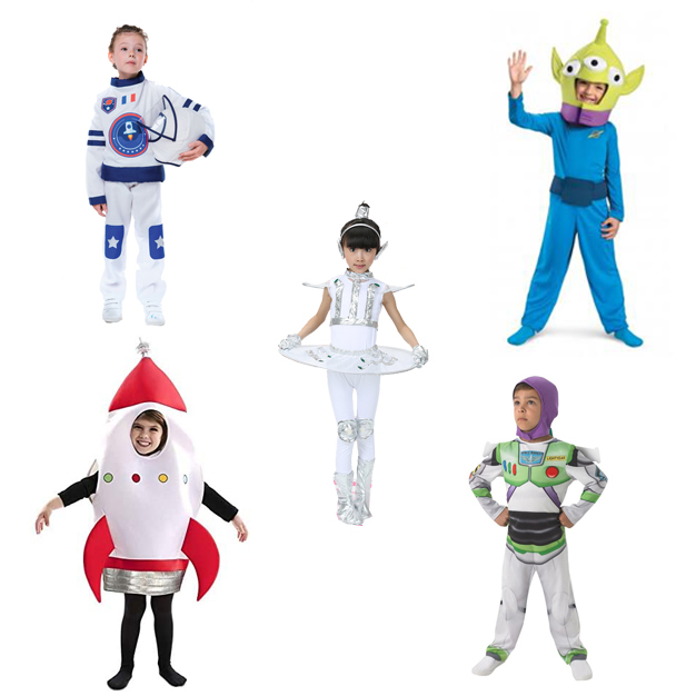Quelques idées shopping ou styles à fabriquer vous-même : 1.Déguisement astronaute chez Oxybul, 2.Costume Fusée chez Amazon, 3.Déguisement Buzz L’Eclair chez Amazon, 4. Déguisement Robot de l’espace chez Amazon 5.Costume Alien chez Disfrazzes