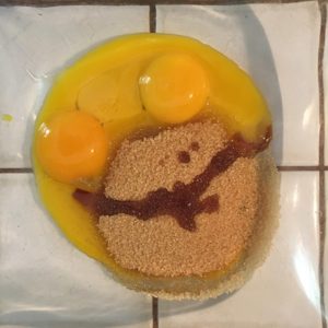 - Gardez les jaunes d’œufs et fouettez-les avec la stévia OU cassonade + extrait de vanille