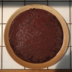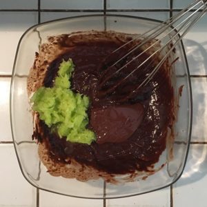 - Versez la farine pâtissière avec le chocolat fondu : Gardez-en un peu pour le nappage. Mélangez.