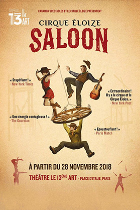 « SALOON » du Cirque Éloize , c’est jusqu’au 6 janvier 2019 au théâtre Le 13ème Art, Centre commercial Italie 2, Place d’Italie – 75013 Paris